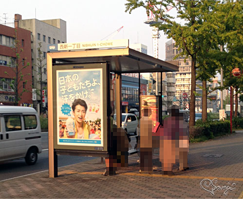 バス停の広告看板が「ナイーブ」の宣伝ポスターになっているんです。